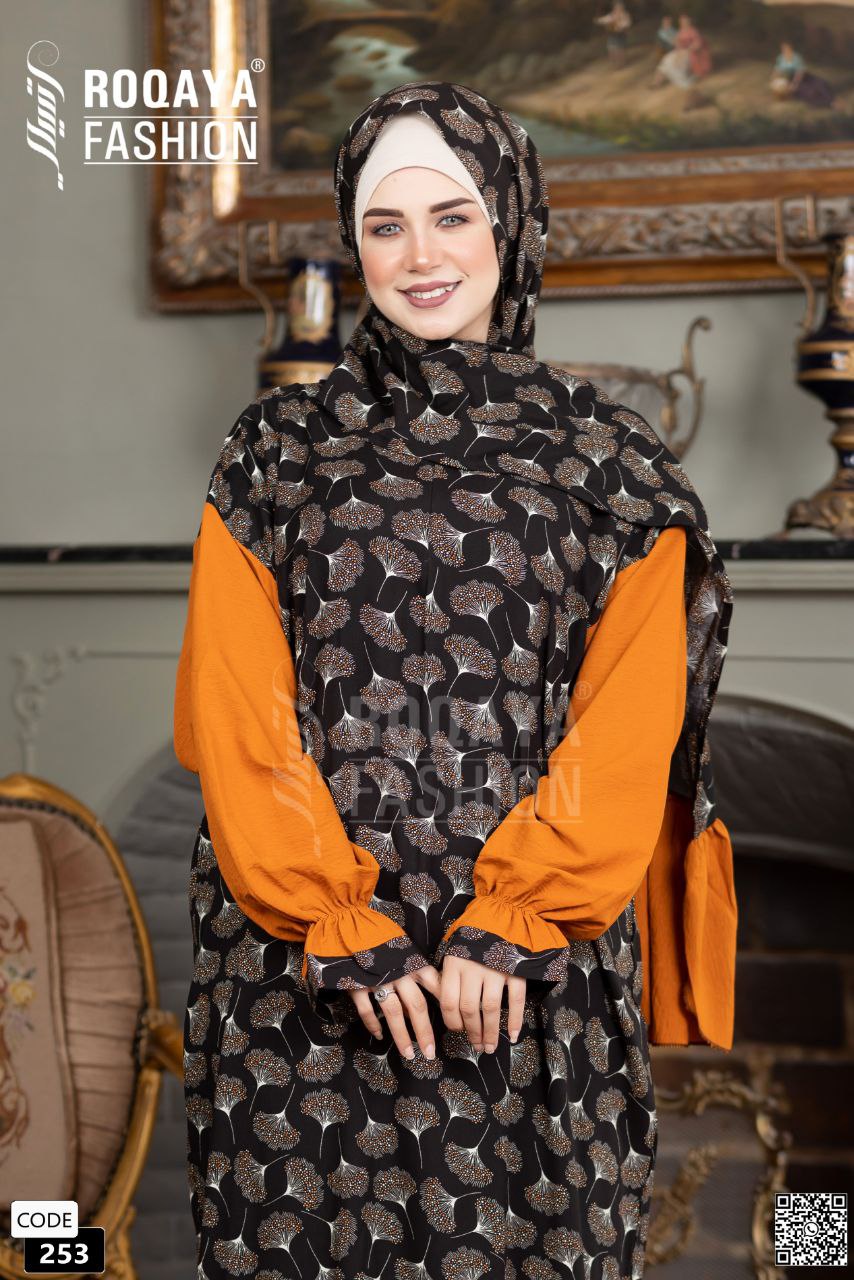 إسدال عملي ومريح بخامة فسكوز ناعمة ومنقوشة، مع كم سي واي سادة ميلانو مستورد يدي شكل شيك وانسيابي.