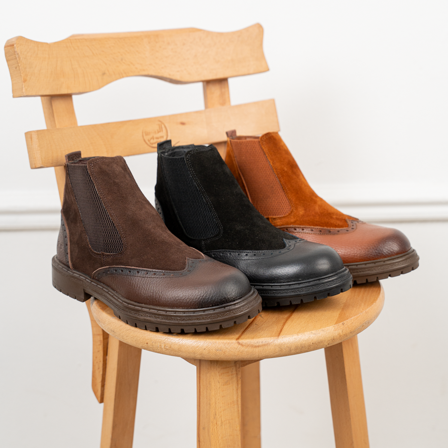 🔥 هاف بوت رجالي جلد طبيعي × شمواه – كود H