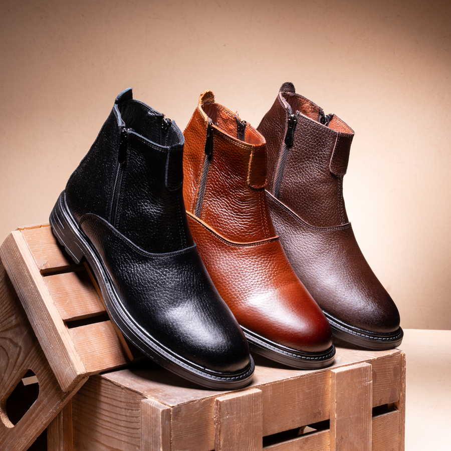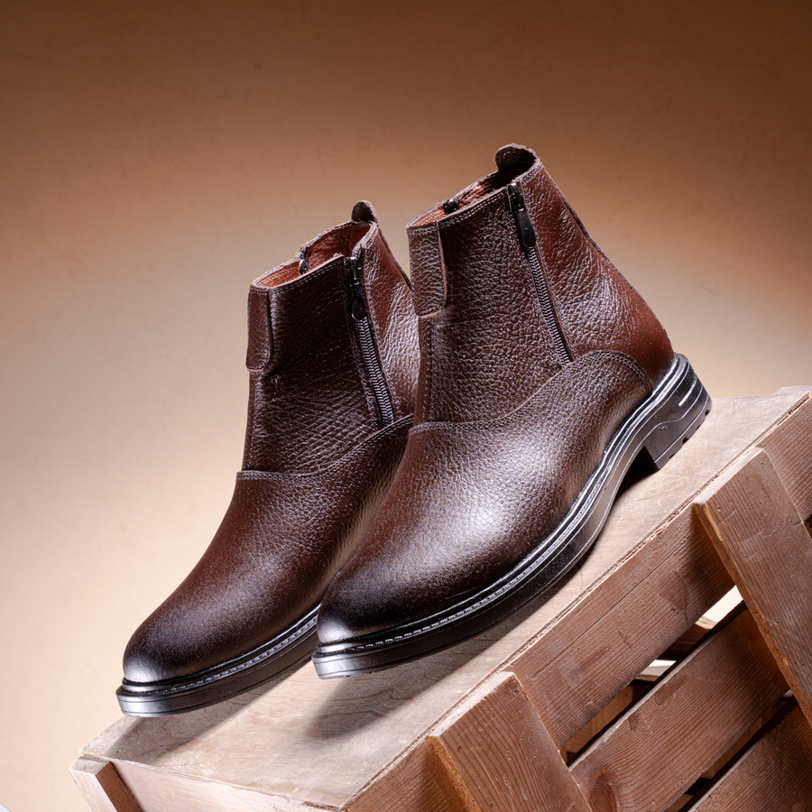 هاف بوت H77 مصنوع من جلد مكسر طبيعي فاخر بملمس أنيق ومتانة عالية تناسب كل إطلالاتك الشتوية 🍂