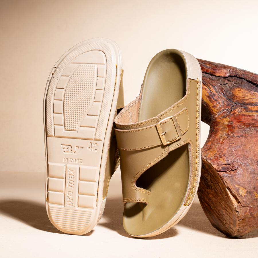 شبشب جلد طبيعي بخامات فاخرة وتصميم تريندي يناسب الشباب والرجال، ومريح جدًا للي بيقفوا وقت طويل.