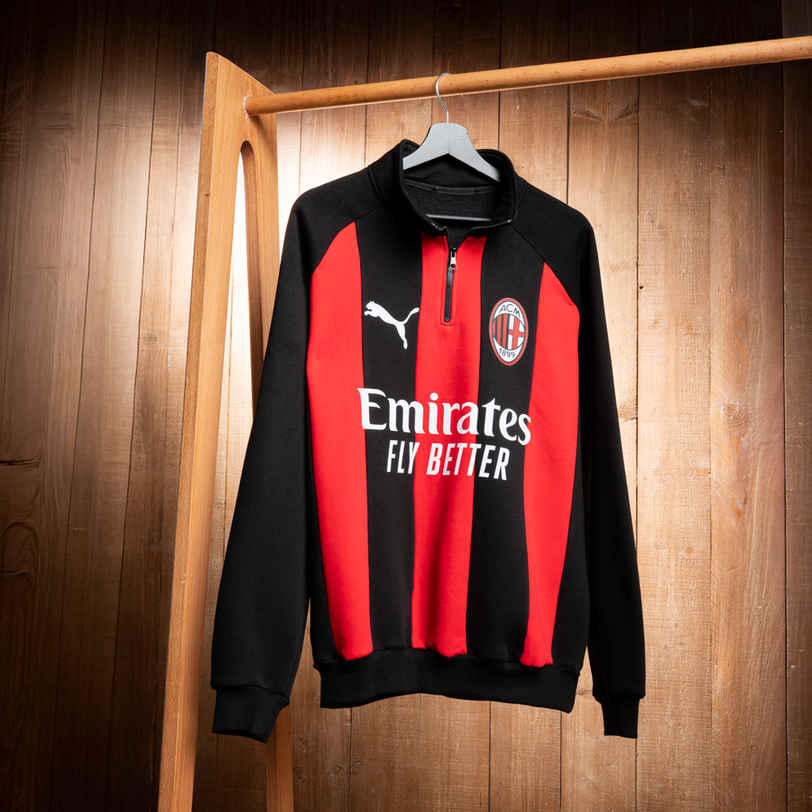 جاي بتصميم Classic Red & Black Stripes الأيقوني لنادي AC Milan مع لوجو النادي المطرّز وشعار Puma لمظهر رياضي راقي وفخم ❤️🔥