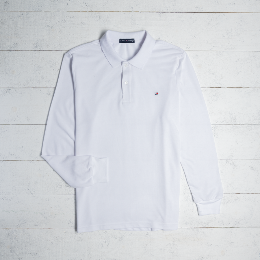 "تيشيرت تومي ياقة... لوجو مطرز يجنن على الكم! 🔥🧥"