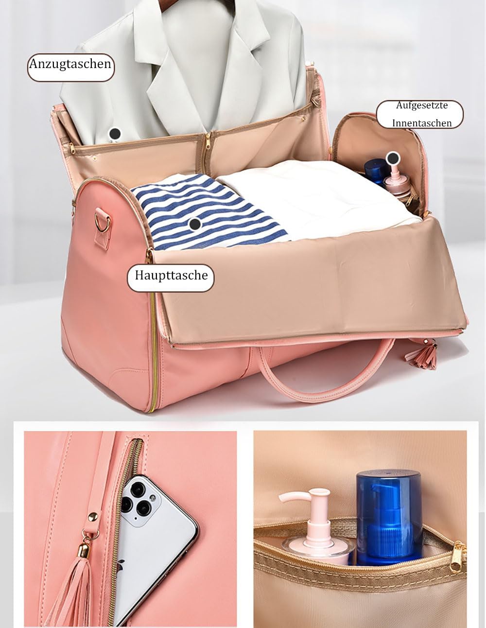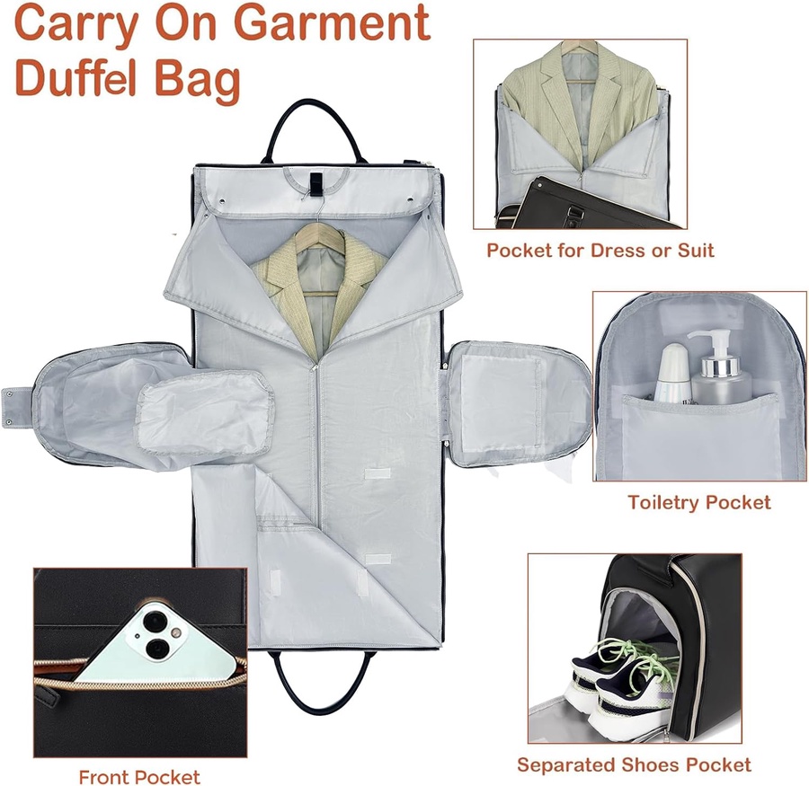 2️⃣ قابلة للفرد وبتتحول لجاكيت باج (Garment Bag)