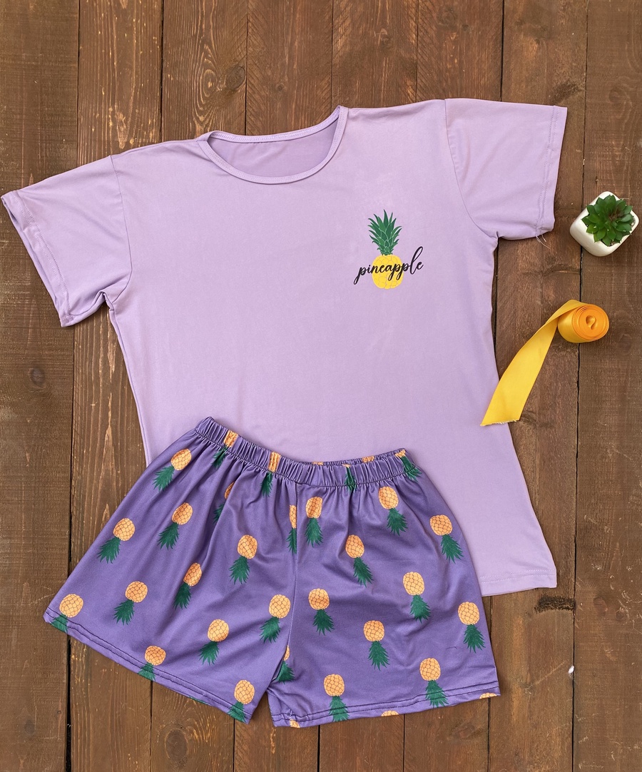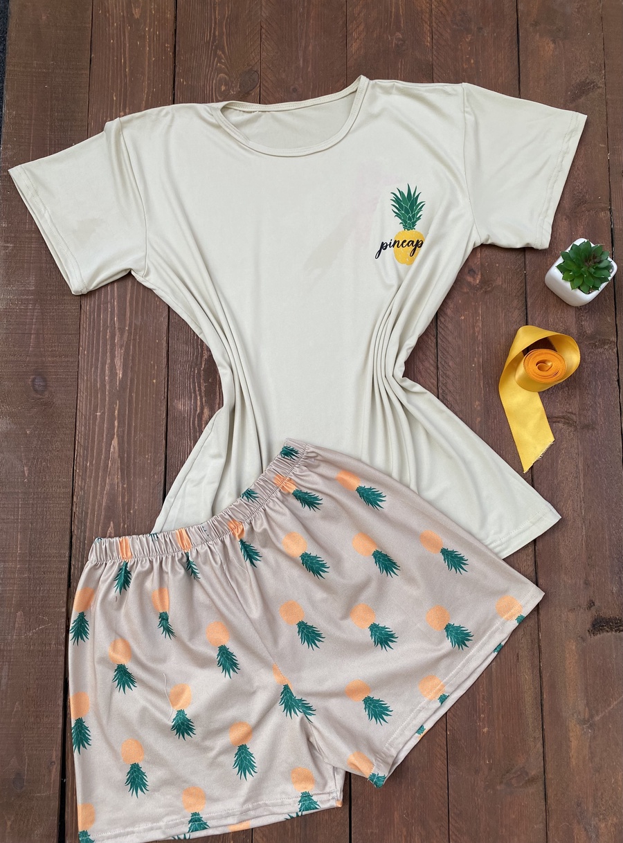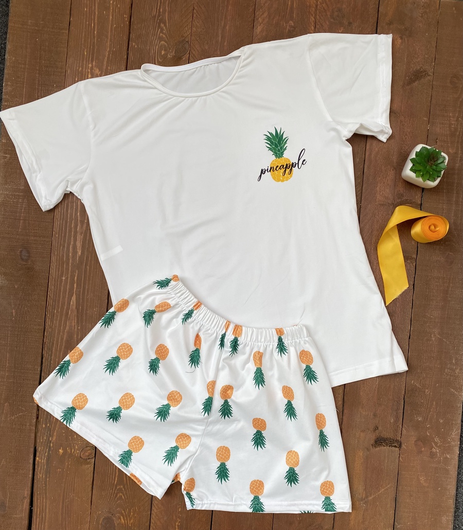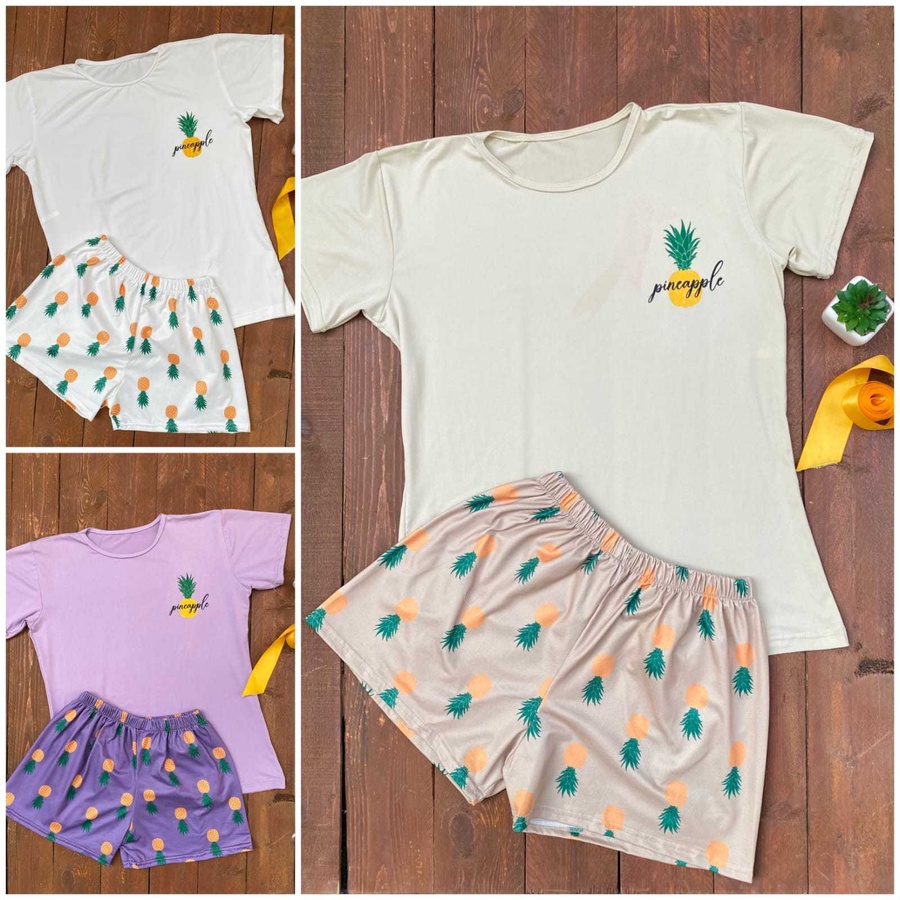 لو بتدوري على بيجامة خفيفة، طرية، ومناسبة للبيت والخروج الخفيف… موديل Pineapple Hot Short هيبقى اختيار مثالي ليكي 👌💛
